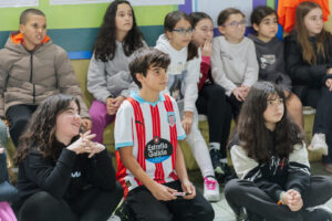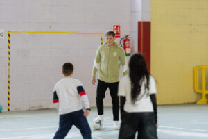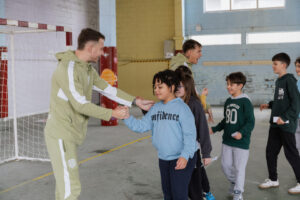 Durante la visita, ambos futbolistas albivermellos tuvieron la oportunidad de compartir experiencias, charlas y momentos cercanos con varios grupos de alumnos y alumnas del centro. Además, no faltó el fútbol, disfrutando junto a los más pequeños de la pasión por el balón que los une y de una agradable mañana en un ambiente distendido y participativo.