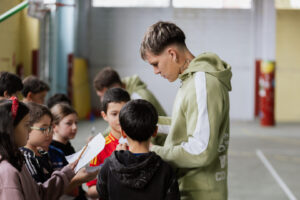 Los jugadores también dedicaron tiempo a firmar autógrafos y atender a todos los niños y niñas que así lo desearon, poniendo el broche final a una jornada muy especial para el alumnado del centro.