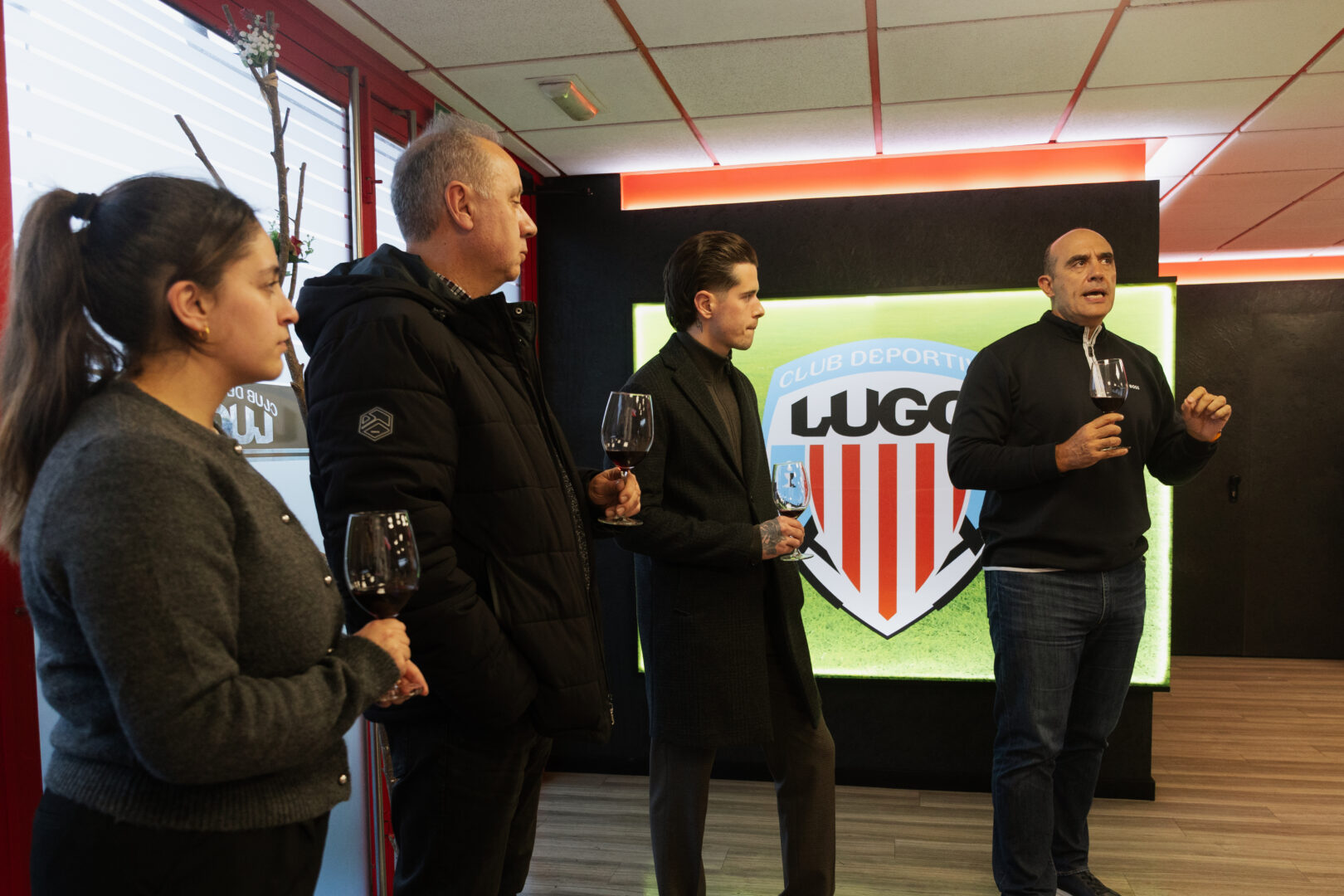 El palco del estadio Anxo Carro fue escenario esta semana de un encuentro institucional que reunió al tejido hostelero de la ciudad de Lugo con el Club Deportivo Lugo, representantes de Bodegas Mauricio Lorca —entre ellos el propio Mauricio Lorca— y Grupo Revoltosa, con motivo de la presentación oficial de “Espírito Loitador”, un vino Mencía de la Ribeira Sacra.