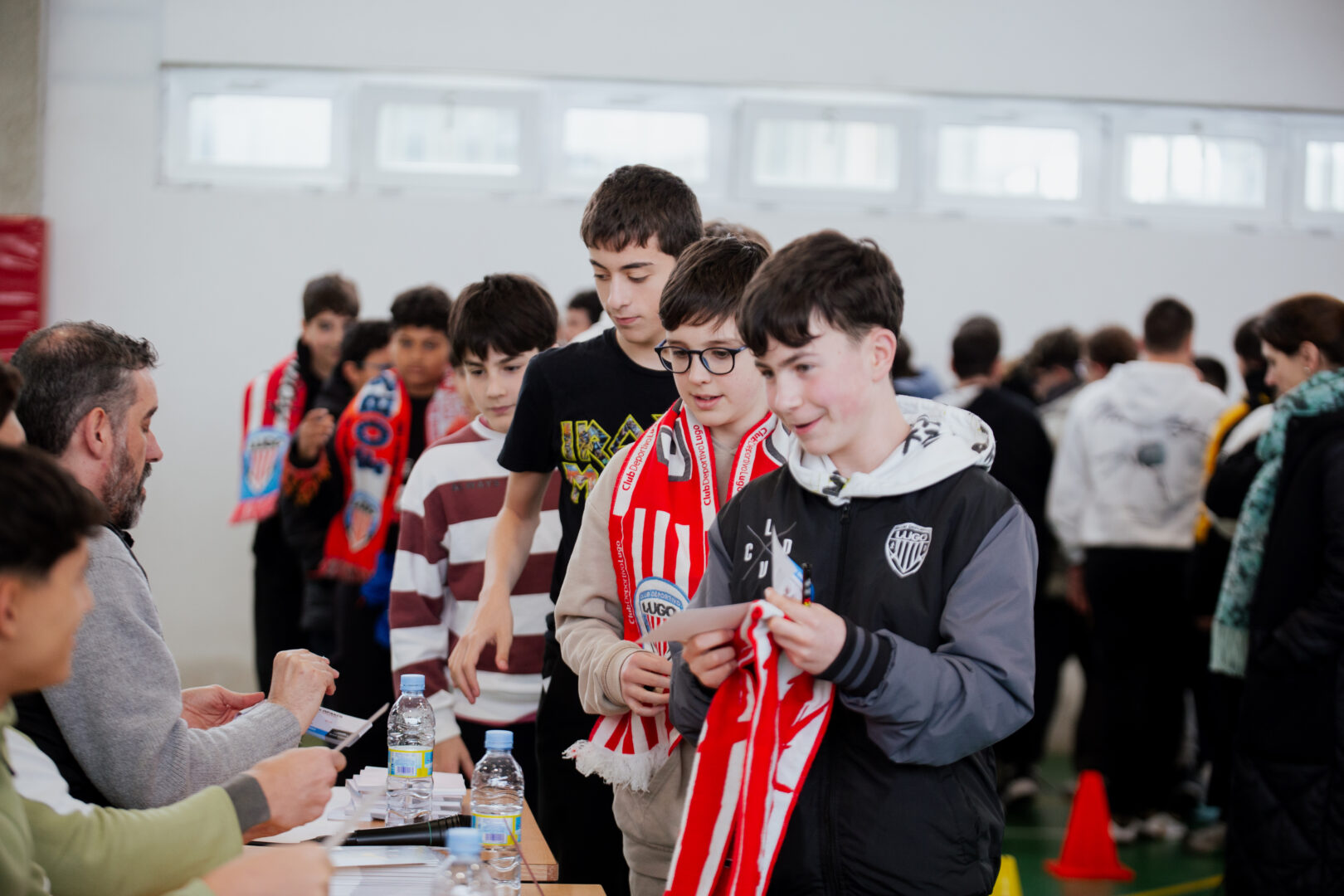 Tras el turno de preguntas y respuestas, llegó el momento de las firmas de autógrafos y del reparto de tarjetas personalizadas, así como de vales de invitación para el importante partido de este sábado frente al Real Madrid Castilla en el Anxo Carro (18:30h). Gracias a esta iniciativa, los alumnos y alumnas podrán asistir al encuentro de manera totalmente gratuita, pudiendo además acudir con un acompañante por tan solo 5 euros. Un partido para el que el conjunto albivermello volverá a necesitar el empuje de la grada en un duelo trascendental en la lucha por mantenerse en los puestos de playoff, y para el que el apoyo de los estudiantes del IES Muralla Romana será fundamental.
